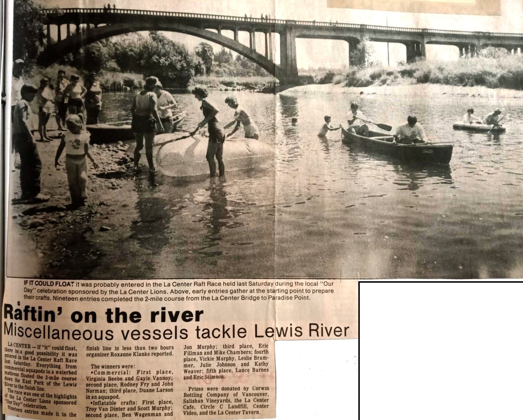 Library Hunt Women’s Basketball Team 1908 1935 Baseball Team Raft Race ca 1970s Amphitheater ca 2004 Amphitheater 2005 Blowing up the bridge in 1977 Dr. Carl Hoffman on horseback ca 1908 Hoberts Store ca 1885 Hot Air Balloons in LC 2006 Hot Air Balloons repaired in LC 2006 LC Grange 1874 LC Museum, house built in 1909, museum started in 2004 LC sign built by Don Anderson in 1986 LC Skating Rink ca 1950’s LC totem.story pole erected in 2003 Log Flume ca 1890s Margaret Colf and Bill Walton 2004 Moving the Library 2004 Nick Rachford, LC first Mayor 1909 Parade 1950’s portraying Women’s right to Vote during 1920 Parade 1950’s LC Parade 1954 Podunk Main St ca 1907 Podunk’s Main St. ca 1907 The Highland flume was 114 feet high ca 1900s The La Center Bank before the 1930s crash The La Center Bank SAFE ca 1930s – now Dog Groomers The La Center Sternwheeler 1920 Wall of Honor at the post office Wheel Club Community Center ca mid to late 1950’s