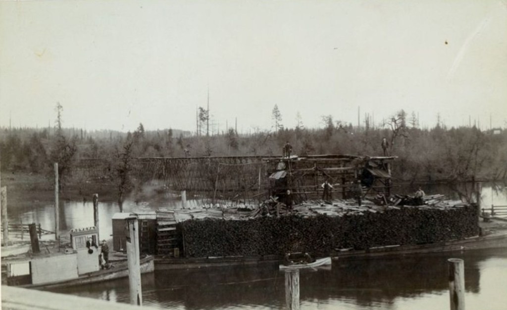End of a flume in La Center where lumber is stacked and ready to be shipped.