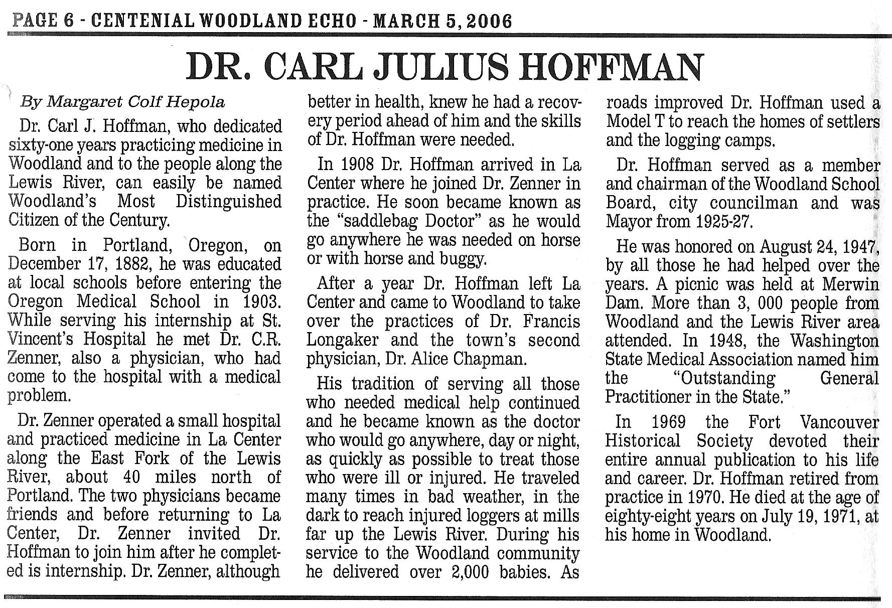 Dr. Carl Julius Hoffman served La Center from 1908 – 1909