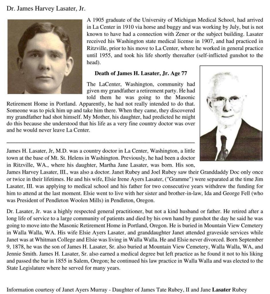 Dr. James Harvey Lasater, Jr. served La Center from 190? – 1955