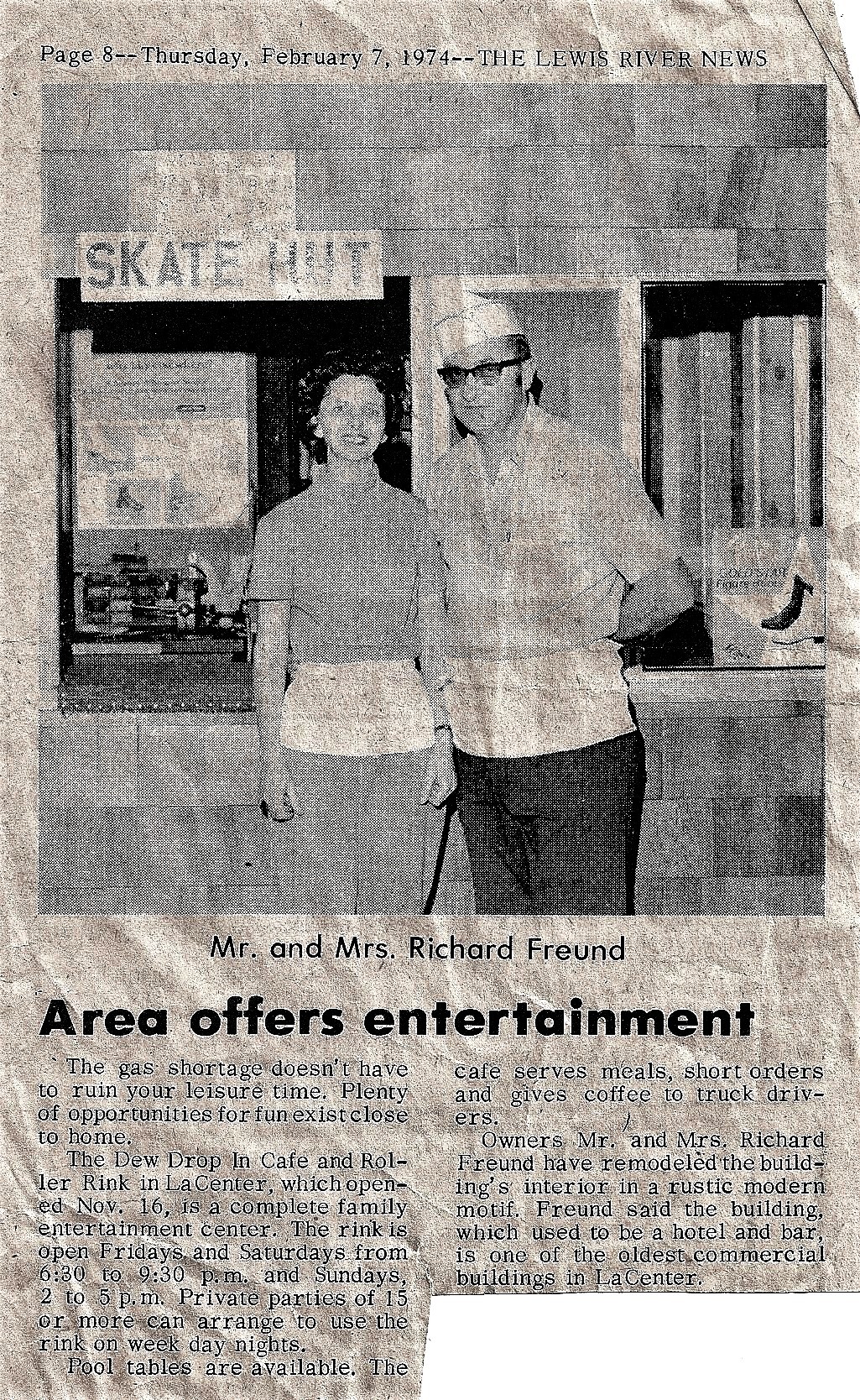 In 1973 it was sold to Richard Freund who remodeled it into the Dew Drop In and Skate Hut