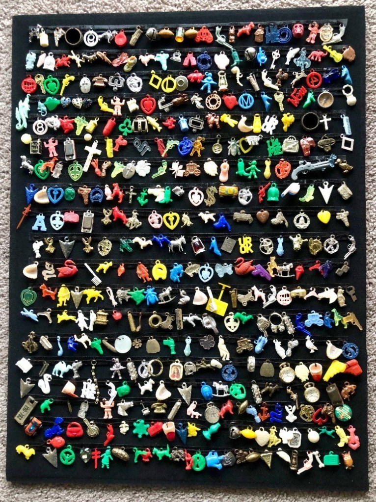 Roberta – Yes, they’re great. Well, my mother started crocheting a chain to put these Items on from the bubblegum machine that was in the skating rink confectionary. She started early on and she attached them to the shelves where they sold the candy. When the kids would get something of interest, but they didn’t want to keep them, they’d give them to her and pretty soon this started to grow and grow. I suspect it’s close to 23 years accumulation there because kids really enjoyed seeing the chain grow. But they also enjoy seeing their little trinkets up there, so they bring in their own little things to put on. That was kind of sweet. My son even remembered that and he was pretty young, so glad to give it to the museum.