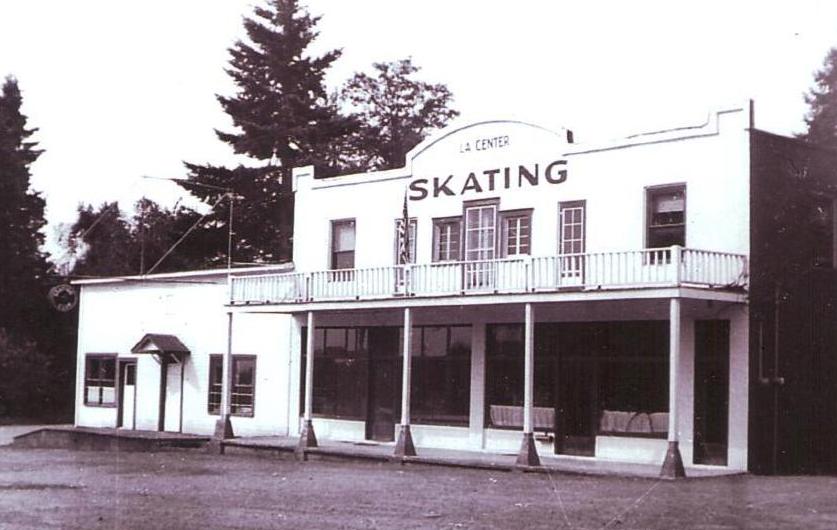 Doria wanted to return to her home ground in LaCenter. Leonard found and purchased the landmark Woodard Hotel, dance hall and surrounding grounds which were in foreclosure at the Cowlitz Co. Bank for a total of $3,000 in 1941. There was a need for hotel accommodations and a restaurant, so they refurbished the main building. Doria handled the business while Leonard worked as a pipe fitter at Kaiser Shipyards–like so many other local men and women. Highway 99 gave way to 1-5 and the traveling public faded. The attached building, the former dance hall with a buckled floor beyond repair, became the focus of their attention when they were offered a good deal on a “package” of skates and sound equipment. A relative from Portland was in the flooring business and soon, the old flooring was removed and replaced with new maple. Leonard, with his carpentry skills, designed a skate room and constructed benches for the skaters. They operated this “mom and pop” business for over 23 years until failing health forced them to sell and move to Vancouver.